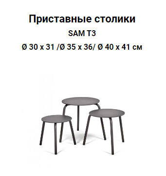 Все элементы коллекции Samba легко штабелируются. Набор из трех круглых приставных столиков из алюминия станет отличным дополнением на Вашей террасе.